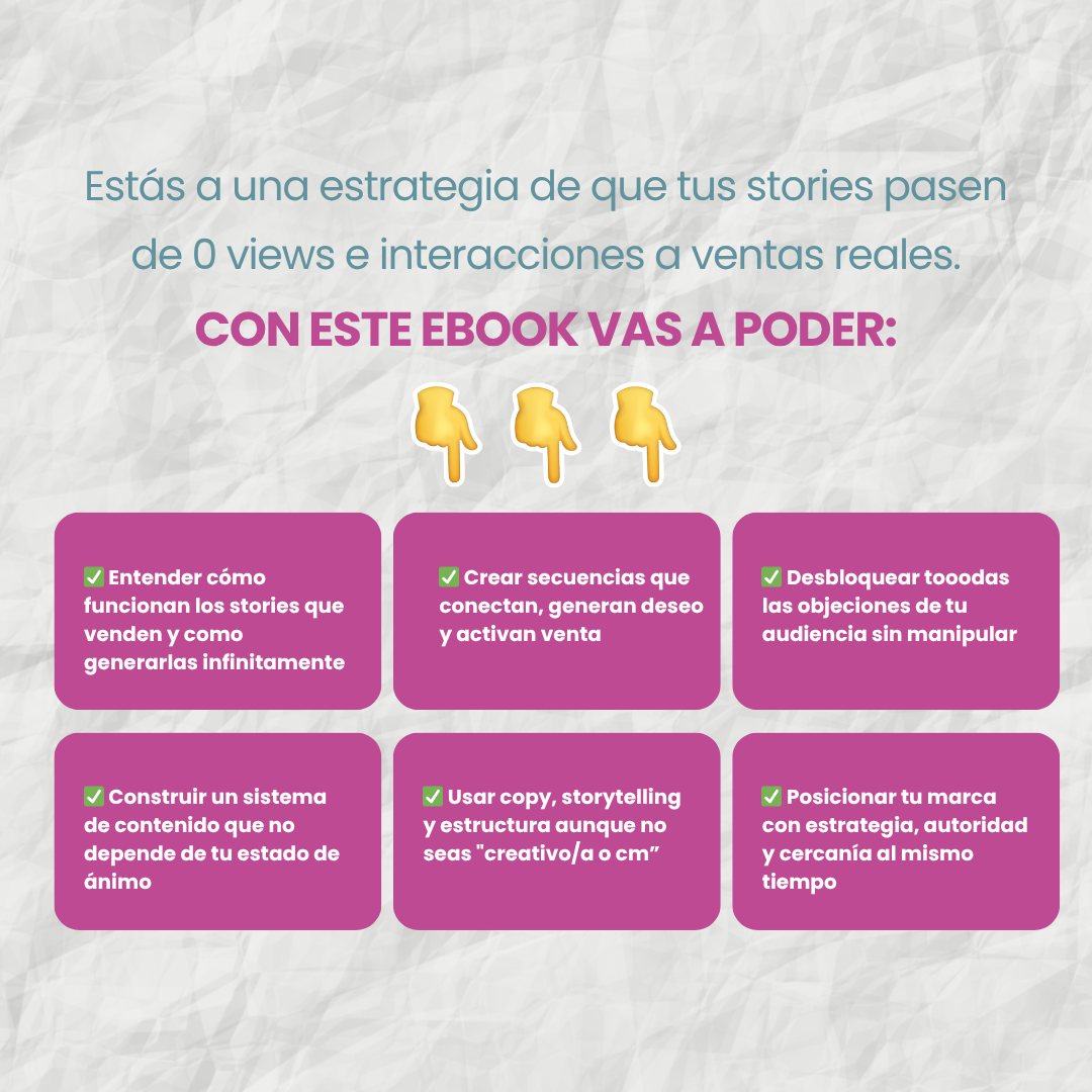 Por eso te pido que lo compres con intención: si querés mejorar tu comunicación y vender con tus stories, este ebook es para vos.